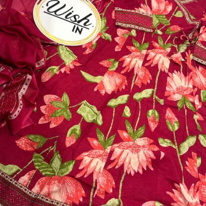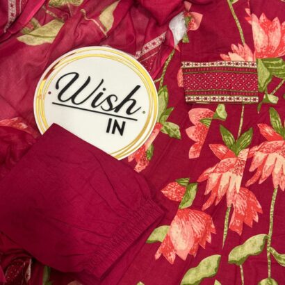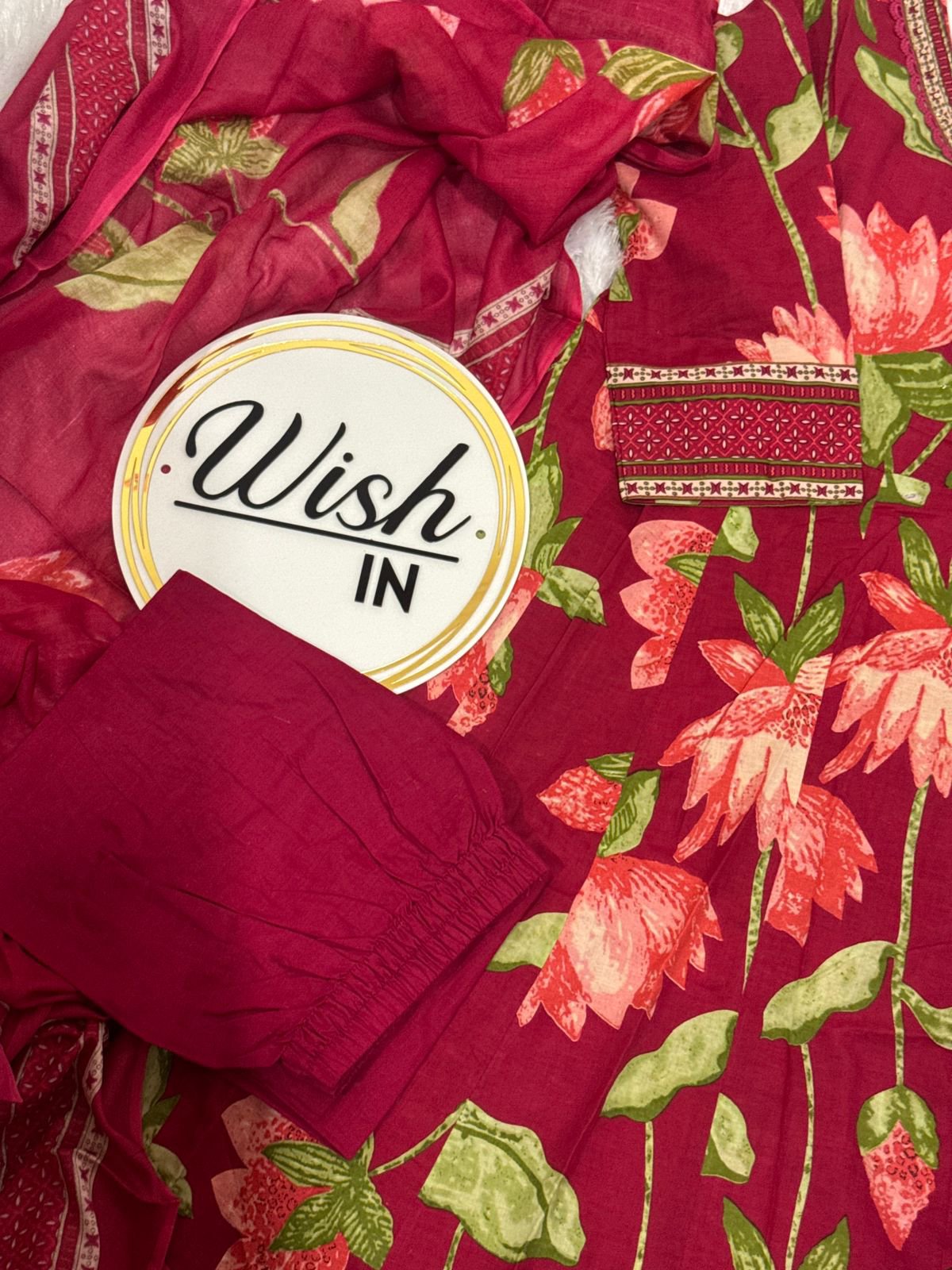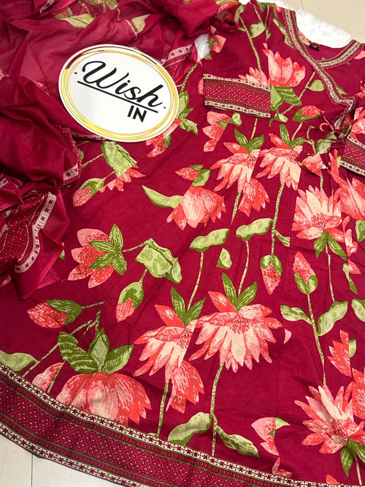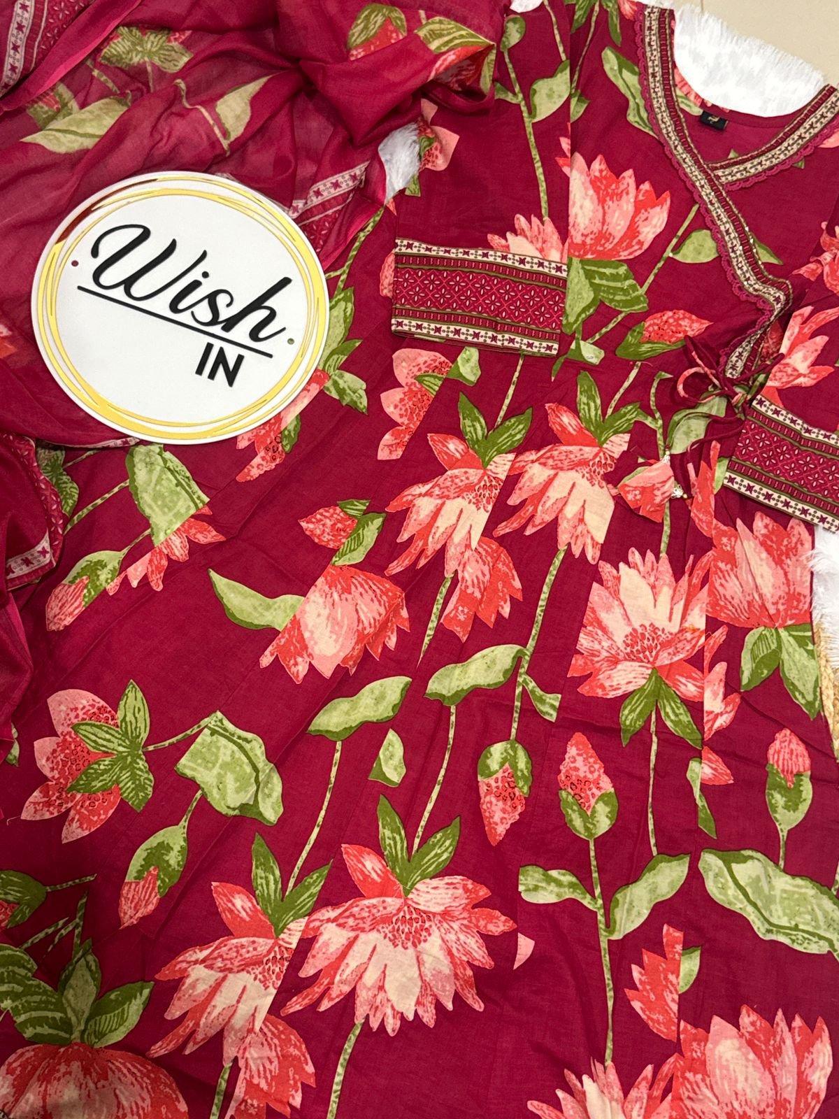 Description – Anarkali Pink cotton suit with premium cotton duppata