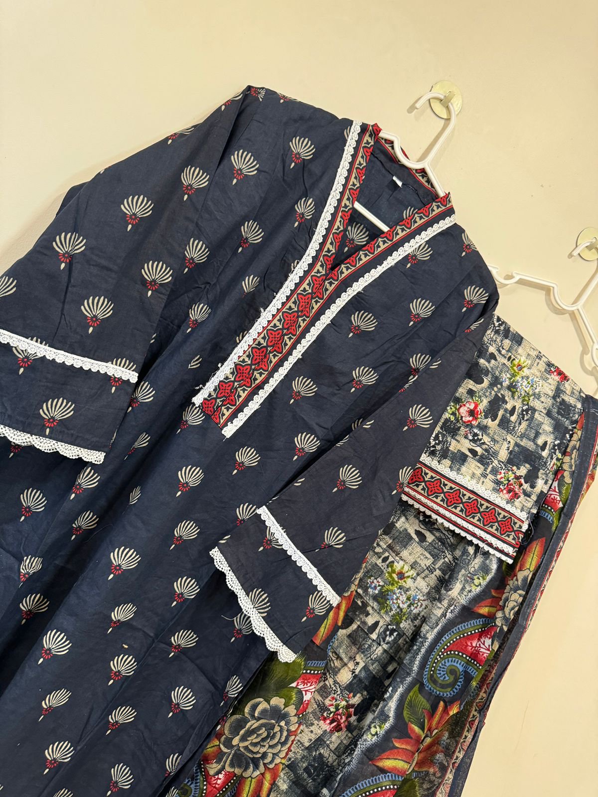 Readymade cotton suits with pant,duppata & lace detailing